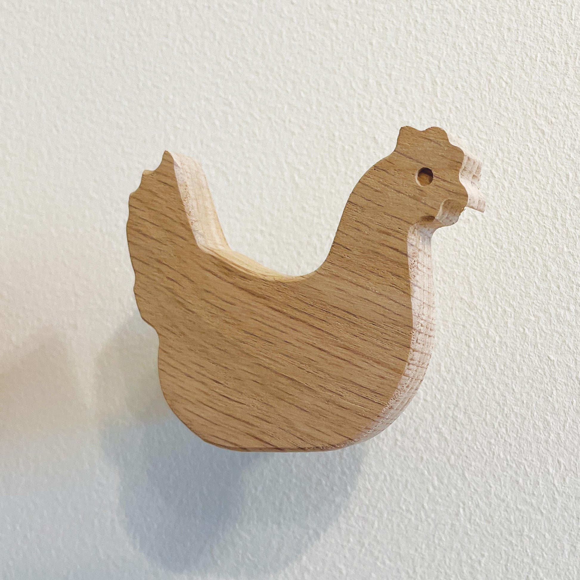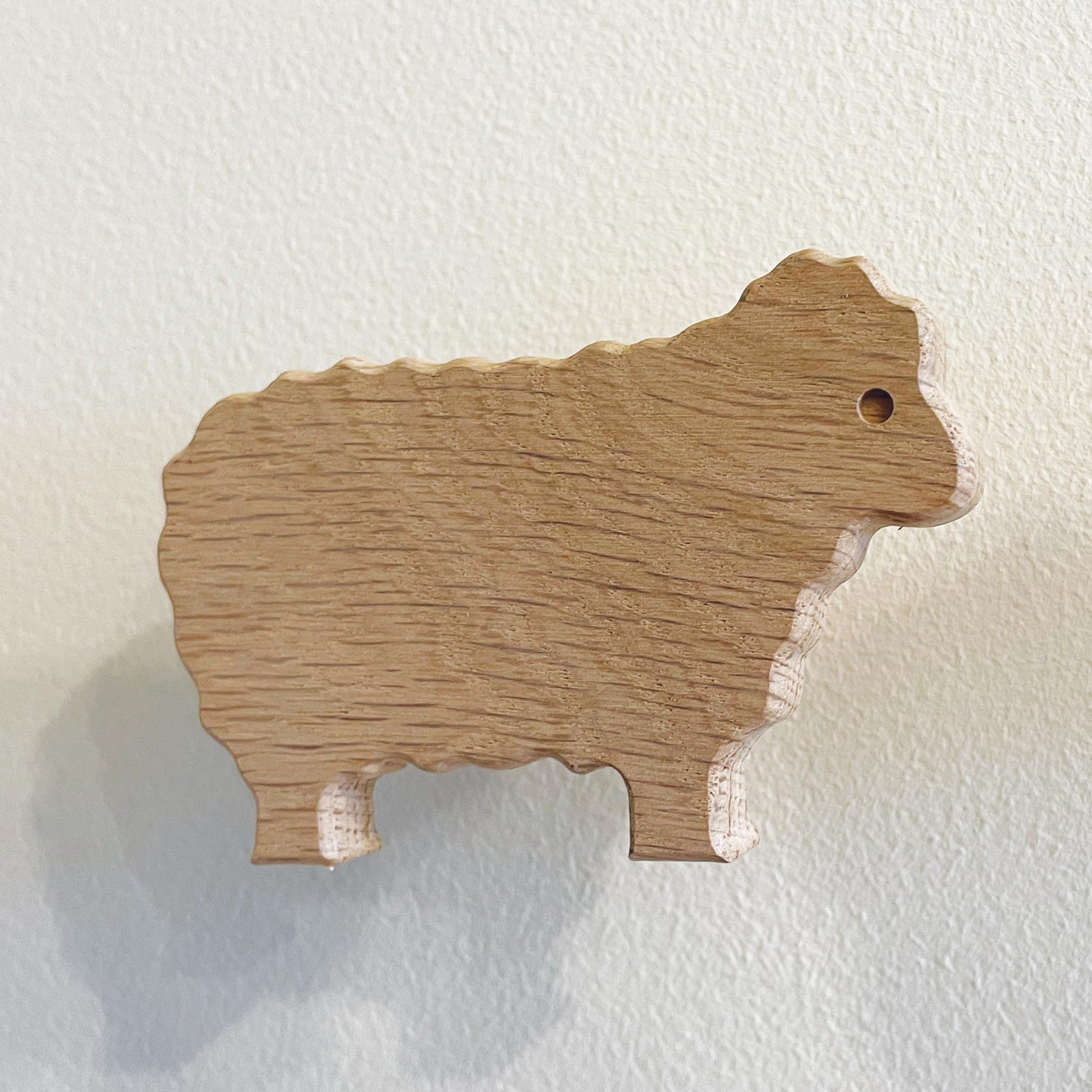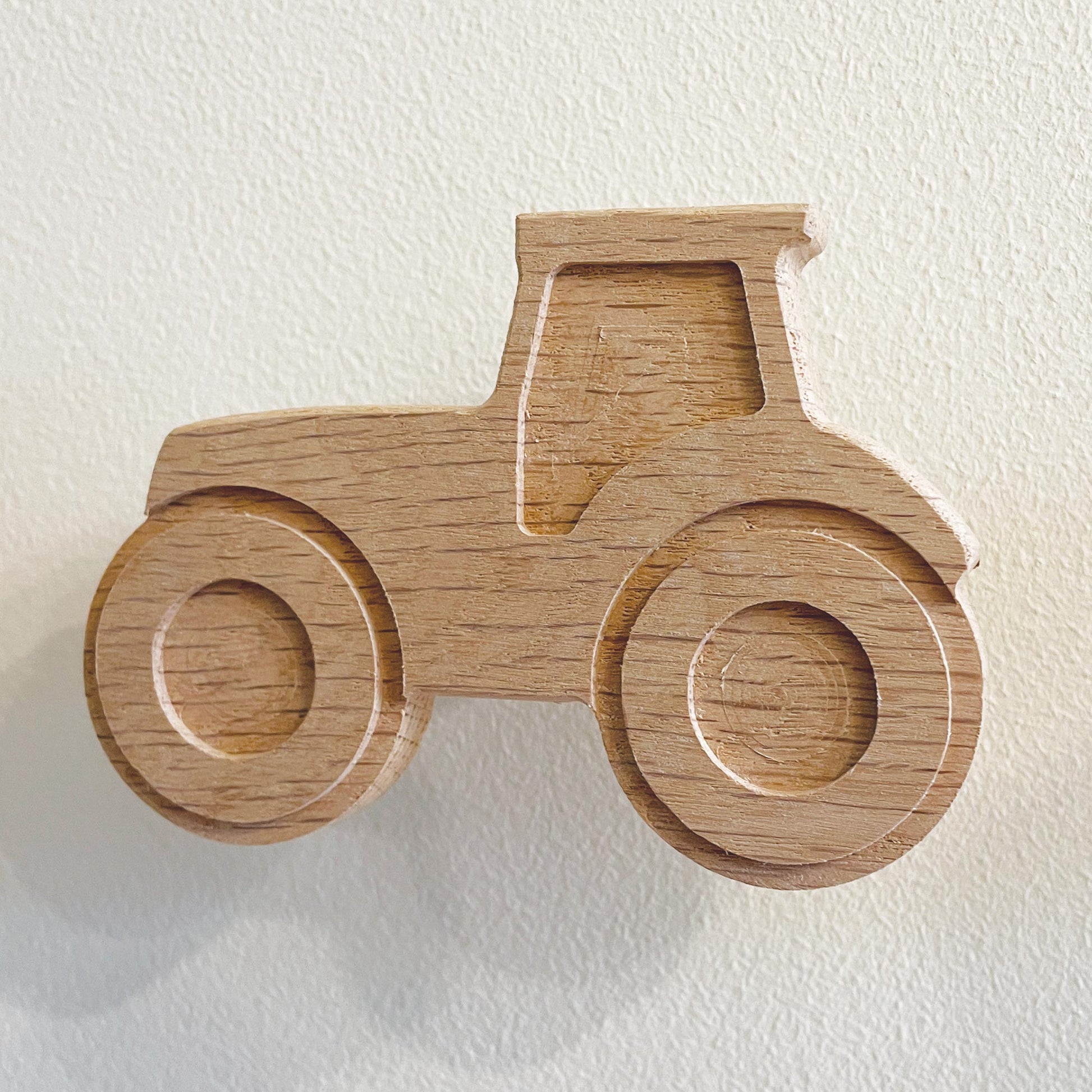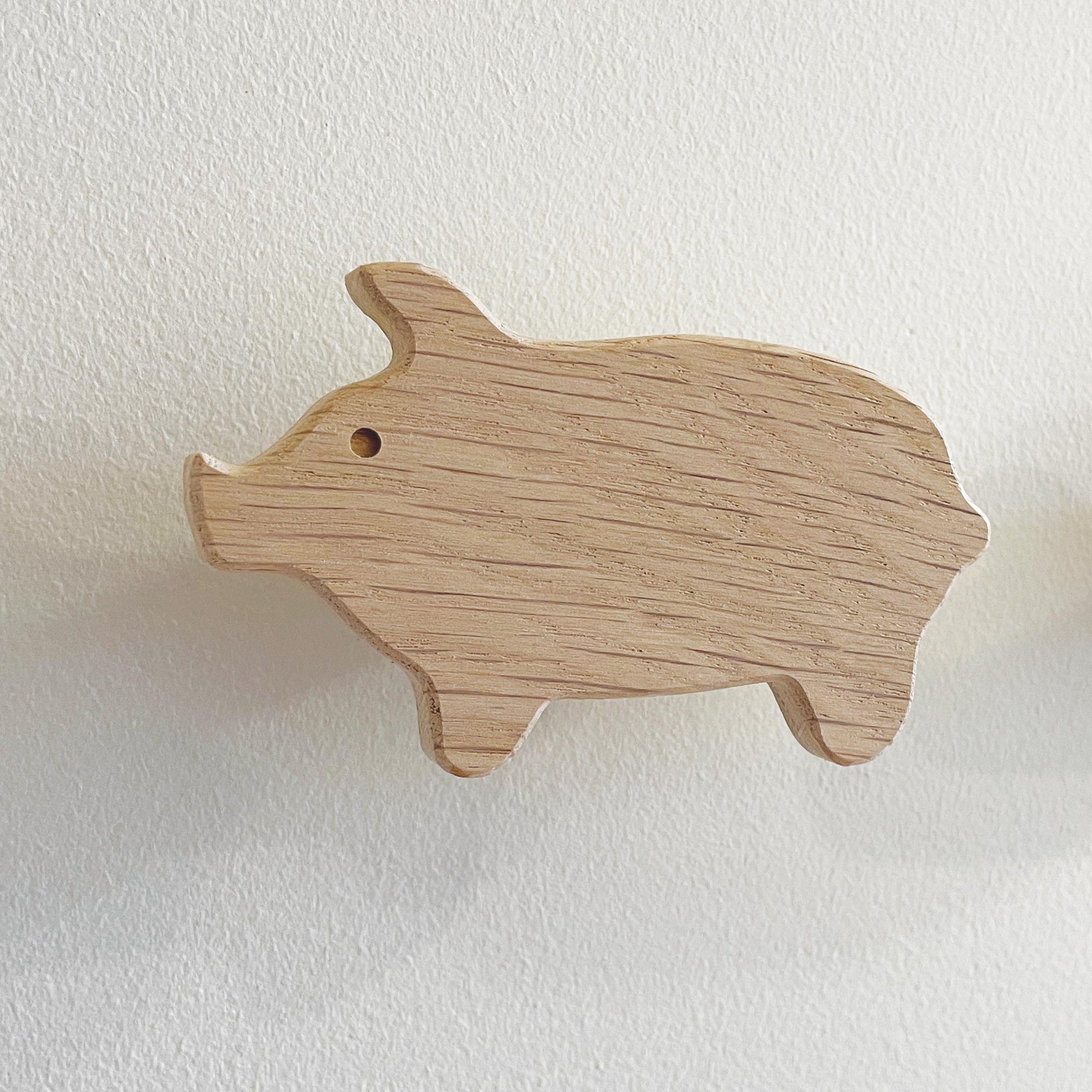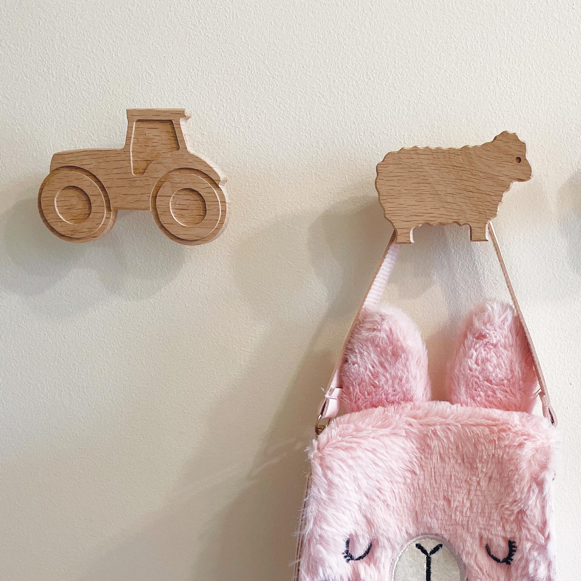 This set of farmyard animal themed wall hooks includes a pig, sheep, chicken, duck and a tractor, all made in the UK from solid oak. They are bound to get the attention of little ones in a playroom or nursery, and also look great in a farmhouse entryway or boot room!