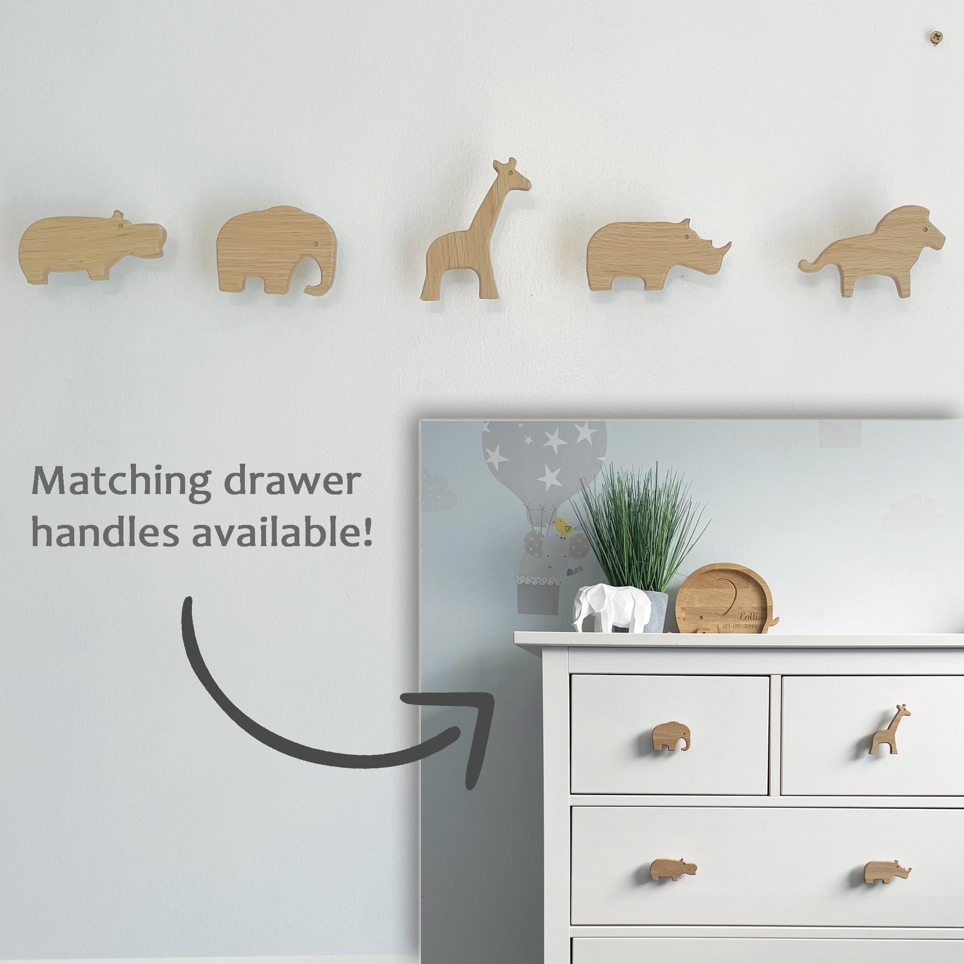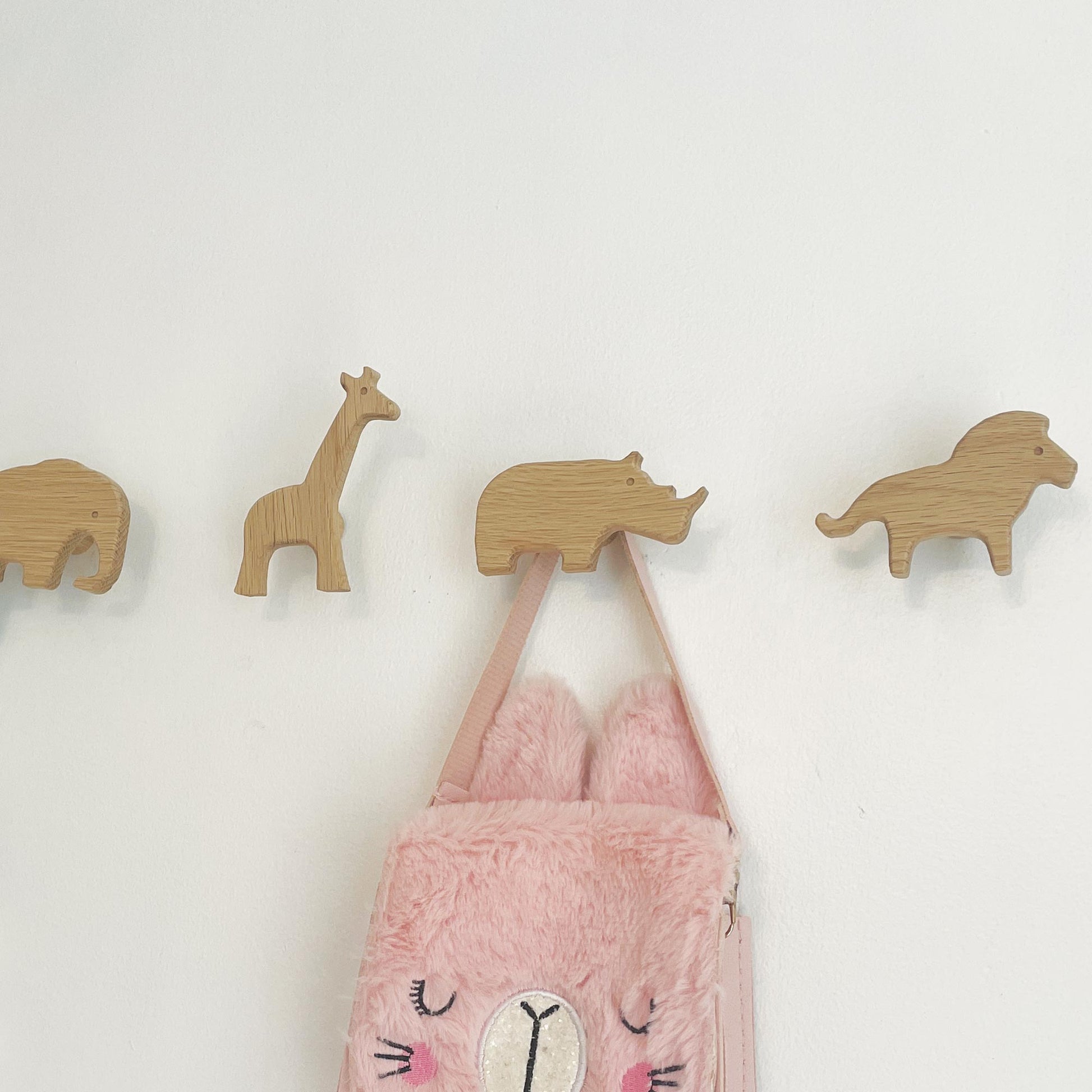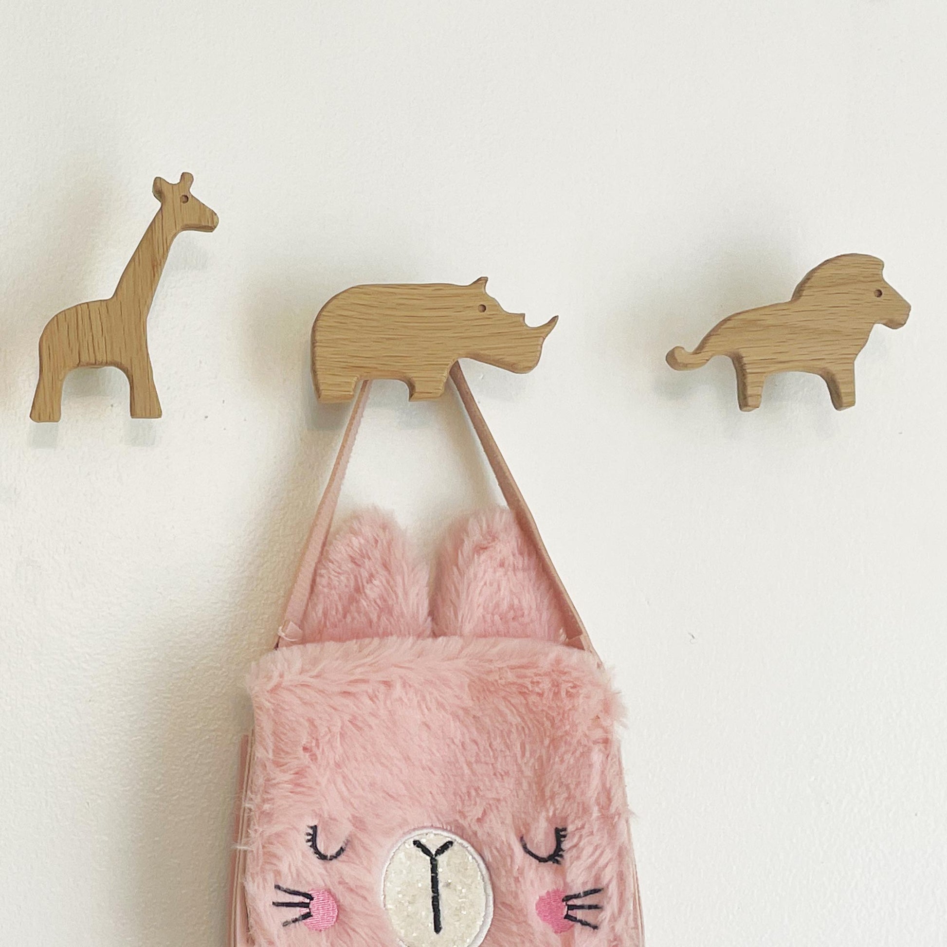 If you are creating a safari themed nursery or children’s room, these safari animal wall hooks will make the perfect addition to your wild animal décor. They are both stylish and practical, and are made from solid oak! This set of five nursery wall hooks includes an elephant, giraffe, hippo, rhino and lion. The animals feature small engraved eyes which really bring them to life – its like being on a mini safari in your own home!