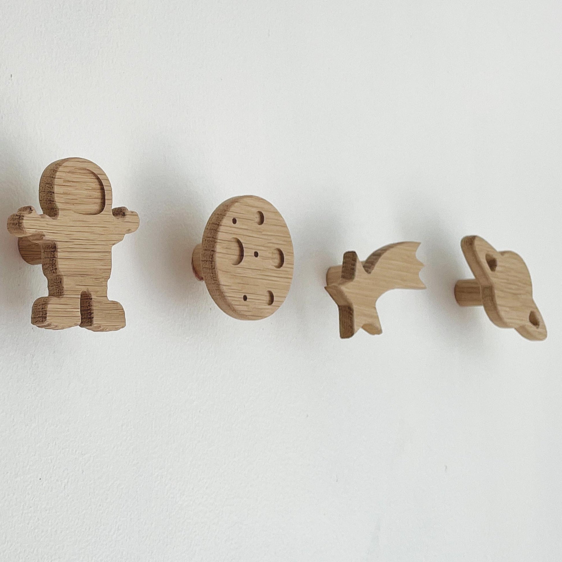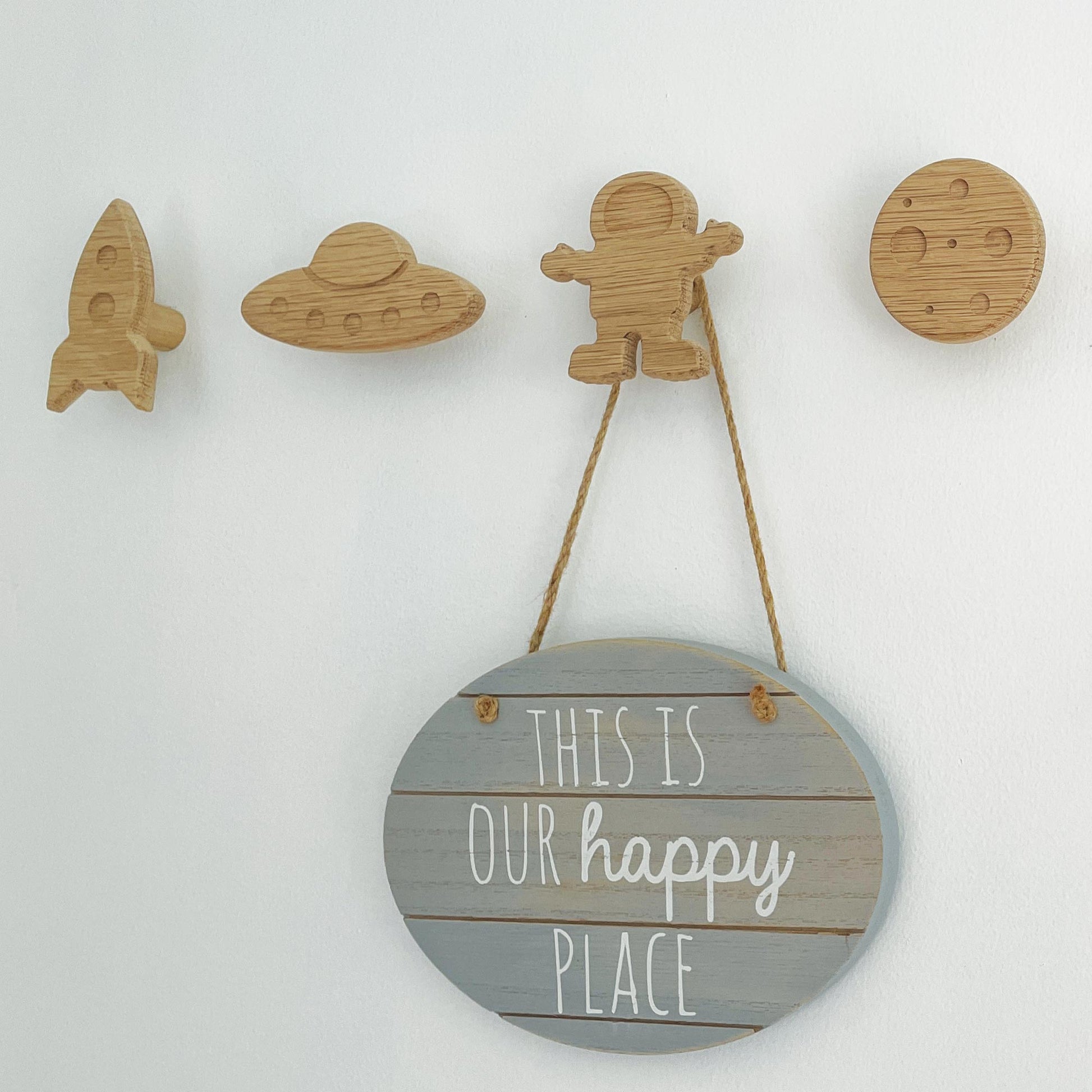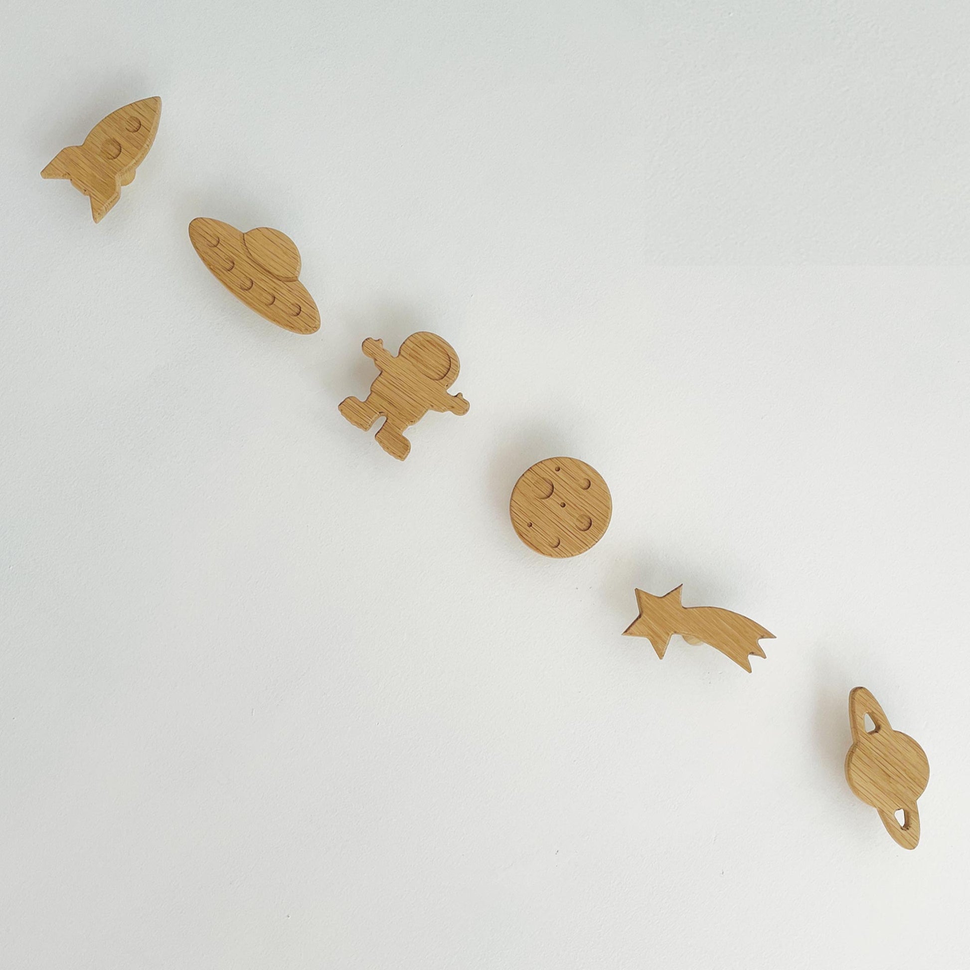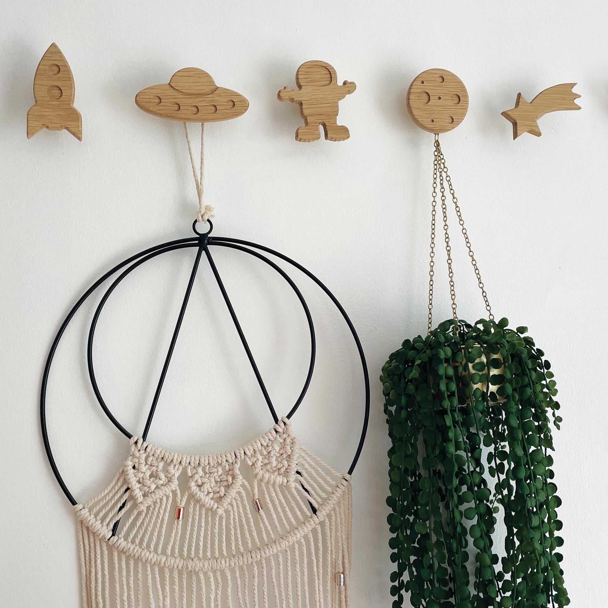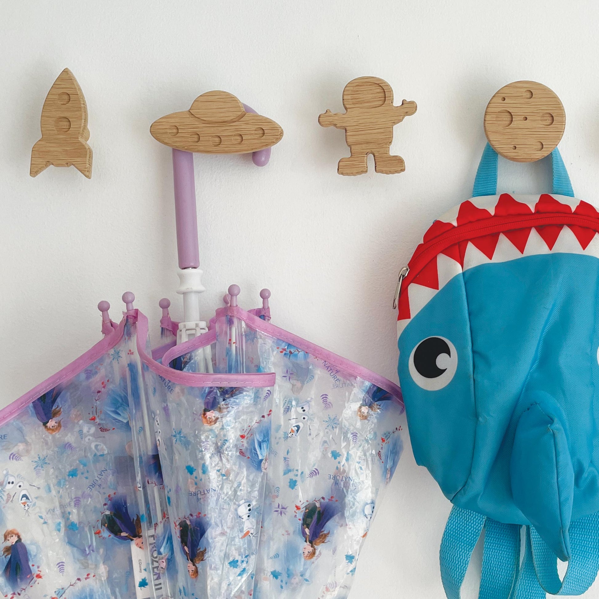 If you are on the hunt for unique space décor, look no further than these space themed wall hooks. This set features a rocket, spaceship, astronaut, moon, shooting star and planet. Whether you are creating a space bedroom, nursery or play room, this selection of hooks is sure to catch your child’s interest, and add a unique to your room!