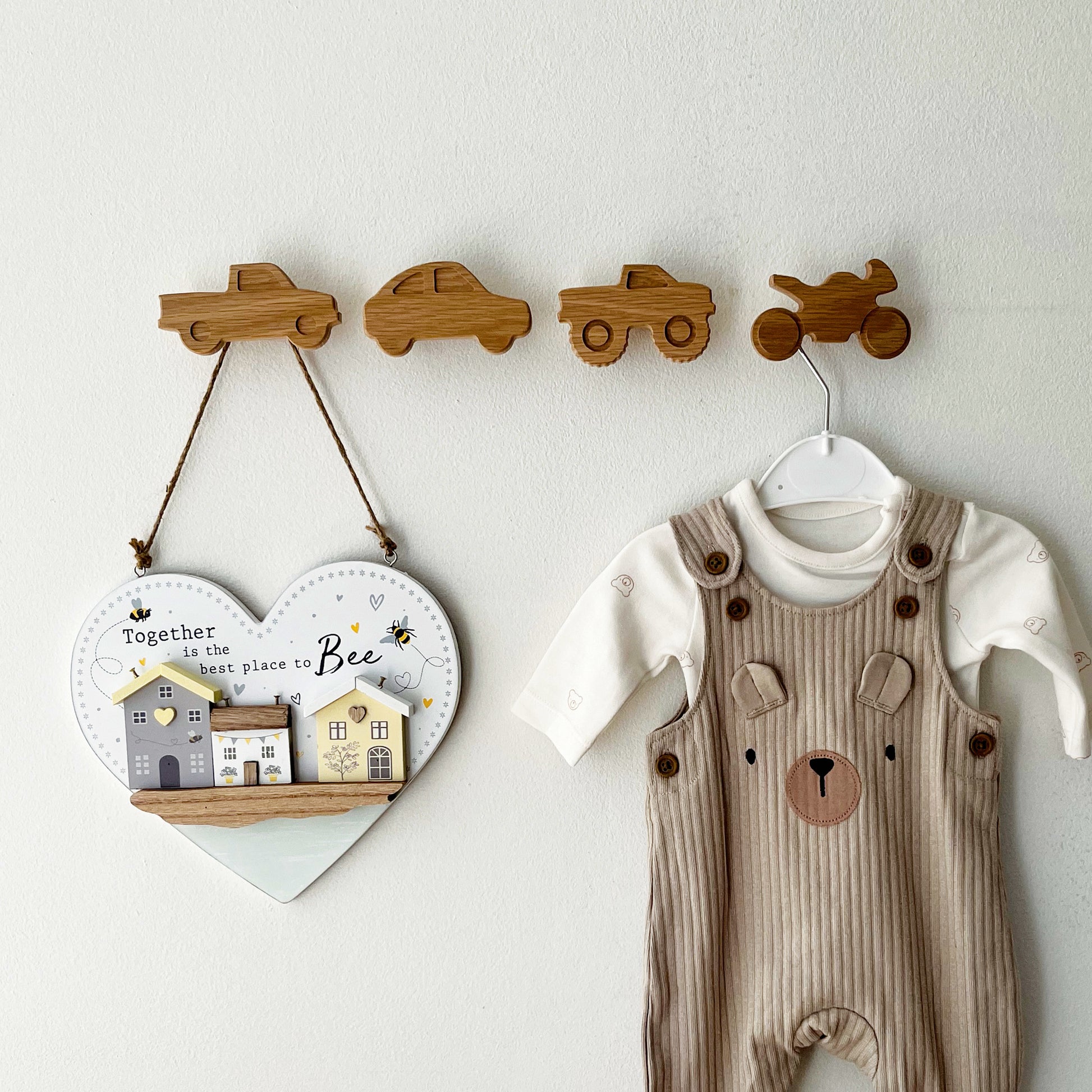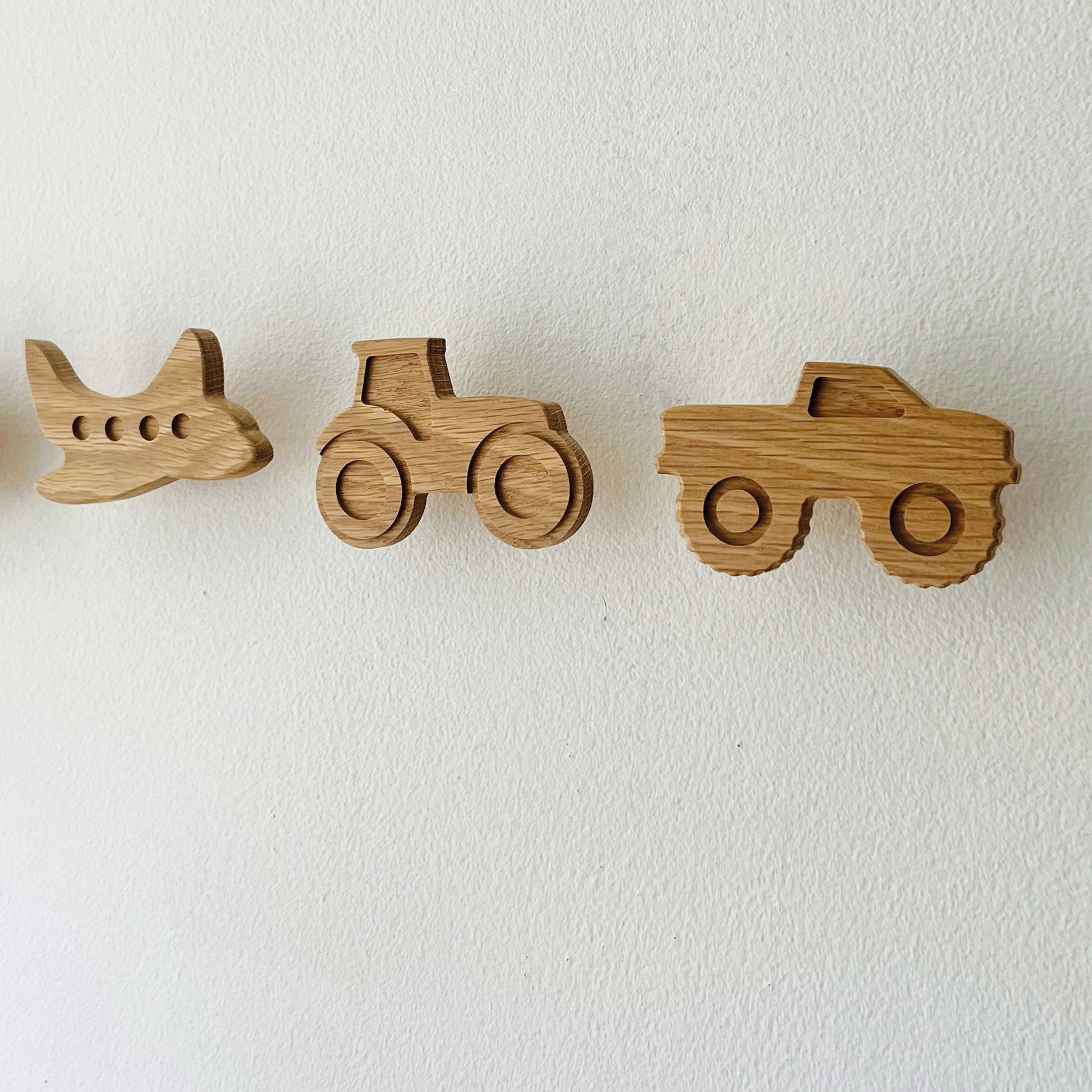 If you are creating a vehicle themed nursery or bedroom, then these car and truck wall hooks will add a real special touch to your room. Take a look through the pictures to find some vehicle theme nursery inspo and choose your favourite shapes. This set of nursery wall hooks includes a car, monster truck, pick-up, lorry, tractor, submarine, boat, tank, bike, plane, train and caravan.