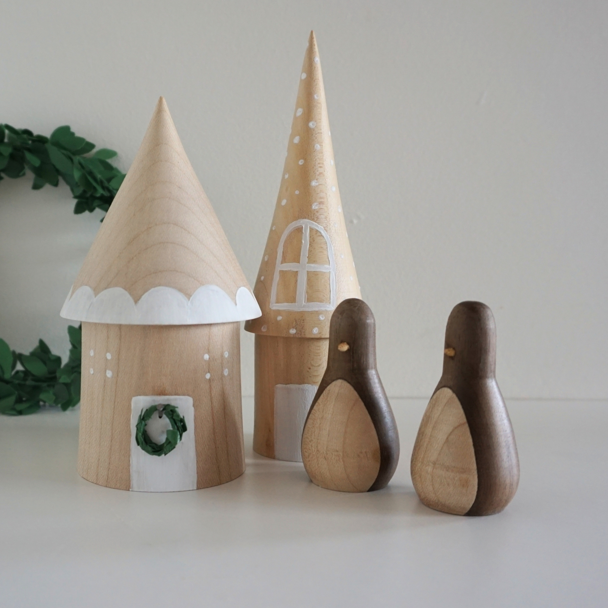These penguins are made of solid walnut and sycamore, and are handmade in the UK in our wood turning workshop. The tall penguin measures ~3 inches and the small penguin measures ~2 inches. They are finished with a clear wax to highlight the grain of the wood and give a natural finish. These mini penguins look great in a Christmas display but are equally cute for penguin lovers or children's nursery decor. Or why not re-create your family with a little family of penguins!